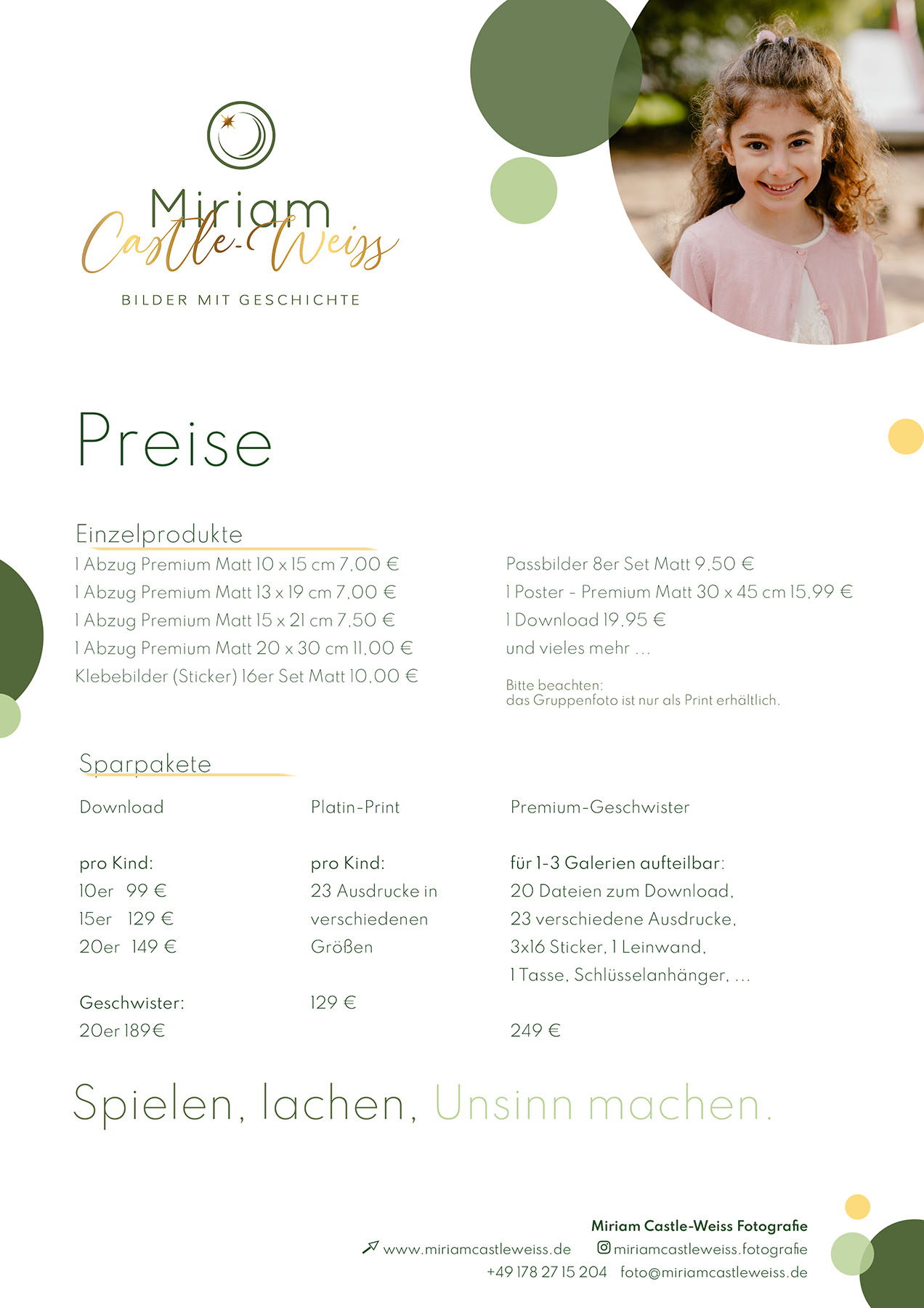 Da jede Familie unterschiedliche Bedürfnisse hat, können Sie sich bei mir Ihre Mappen selbst zusammenstellen. Ob nur ein einzelnes Bild als Print oder ob 10 Bilder gefallen, Sie können selber entscheiden, in welcher Größe und in welcher Form Sie sich Ihre Prints wünschen.